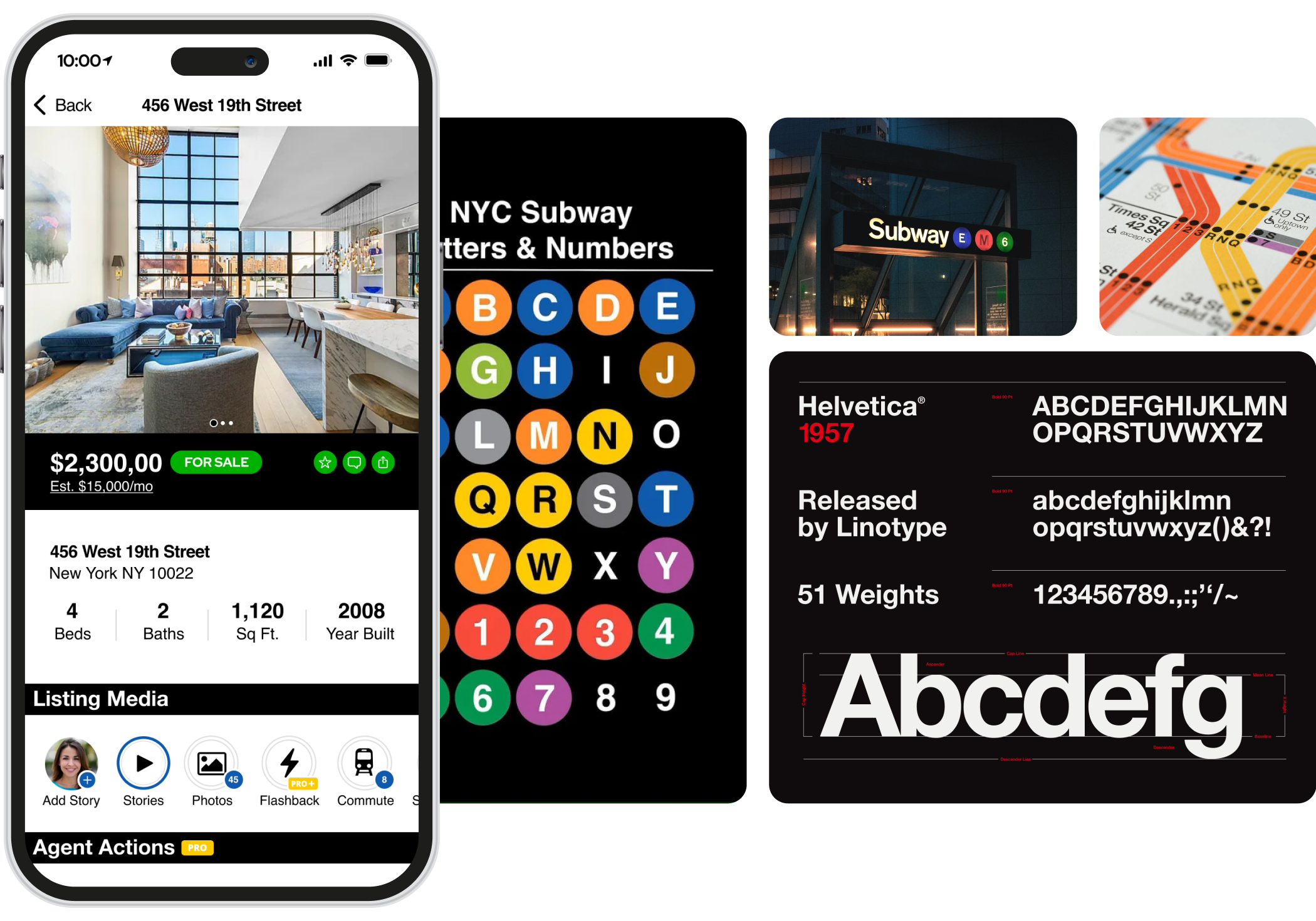 For the initial concept meeting with REBNY, we explored various design options but landed on representing the MTA Subway design, conceptualized by the infamous Massimo Vignelli. As a UI/UX designer it’s important to introduce visual concepts users would be familiar with so a new app would not be as intimidating. When the initial designs were presented to REBNY, we shared inspiration where the visual components came from along with the iconic look and feel Massimo Vignelli came up with for the NYC subway.