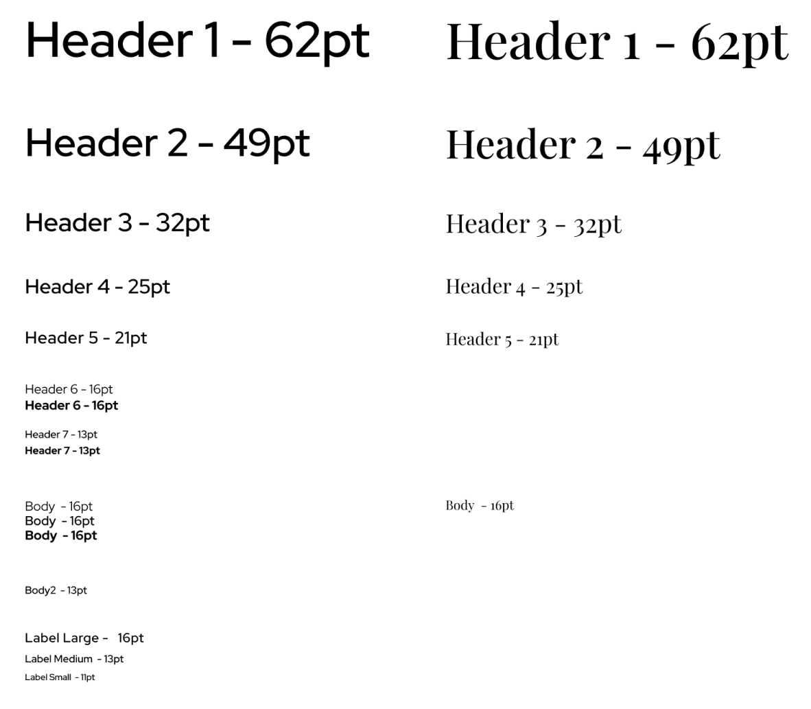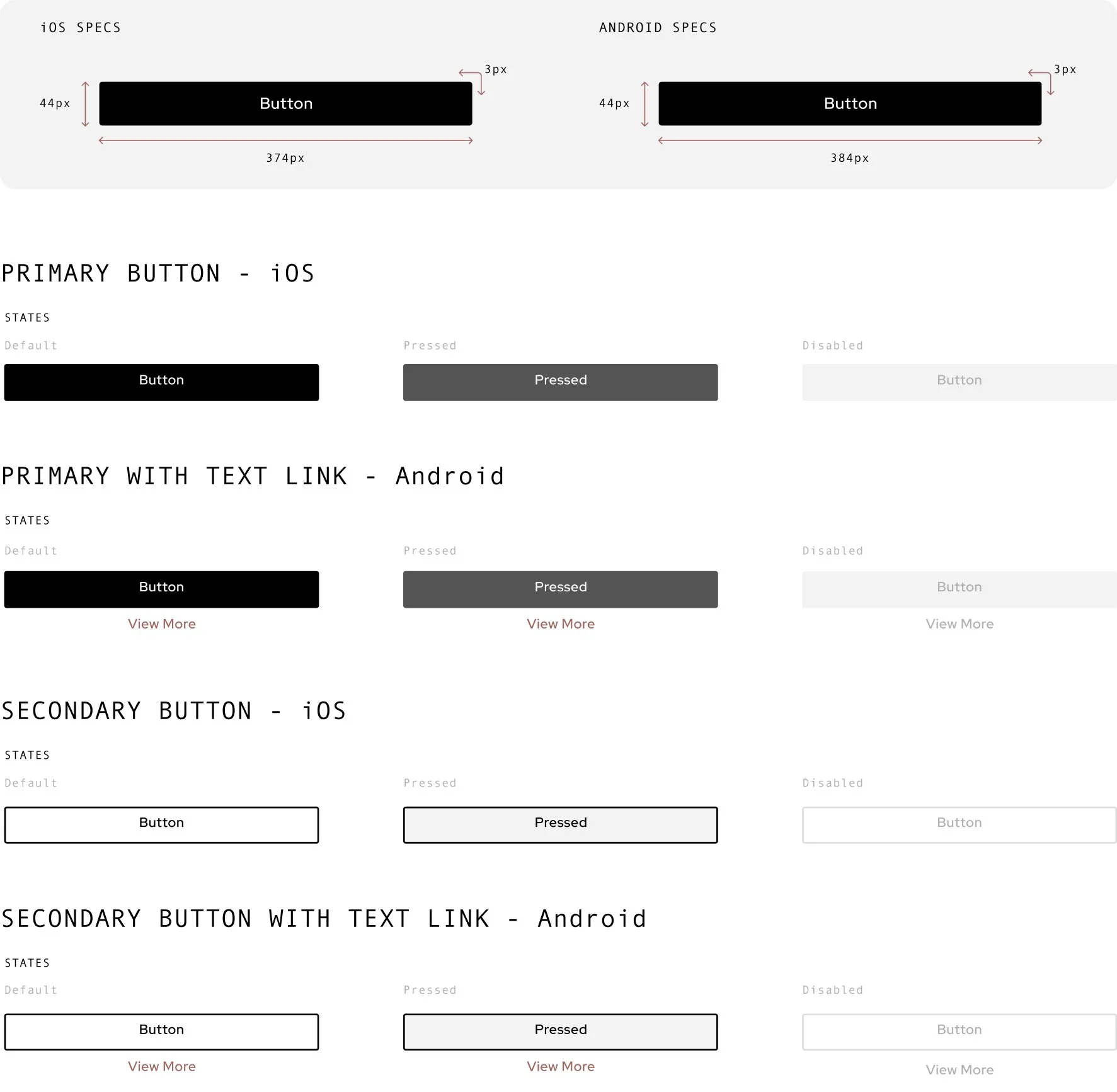 The biggest hurdle while creating the Citysnap design system was coming up with a typography scale that would work across iOS and Android devices, the starting point being legacy code. The designers worked closely with the native developers to audit the Homesnap app and figure out which type styles currently existed. From there, we paired down font sizes and styling to meet native design system standards and came up with the type scale below.